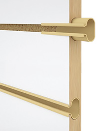 Экономпанель — это ламинированная панель из МДФ размером 1200 × 2400 мм (Ш × В) с горизонтальными пазами (шаг 100 или 50 мм), в которые вставляются специально изготовленные аксессуары различного назначения: крючки, полки, навесные корзины, кронштейны для одежды, головных уборов, мячей и другие.