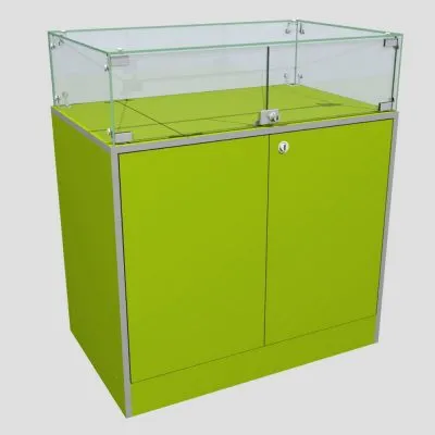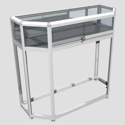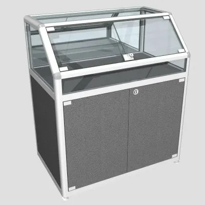 Выставочная часть из алюминиевого профиля, накопитель ЛДСП с полкой, все дверцы распашныеВитрина-прилавок выставочная ПРМ-06