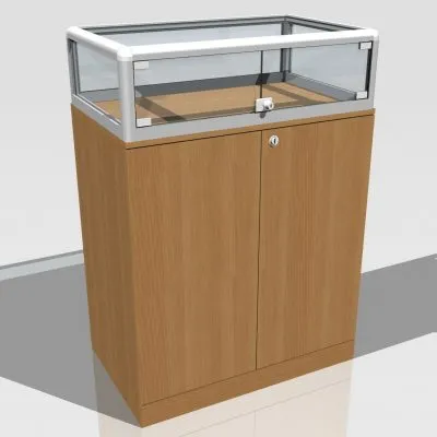Выставочная часть из алюминиевого профиля, низ ЛДСП, дверцы распашныеВитрина музейная ПРМ-08