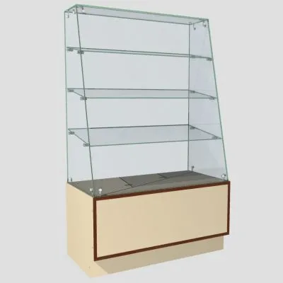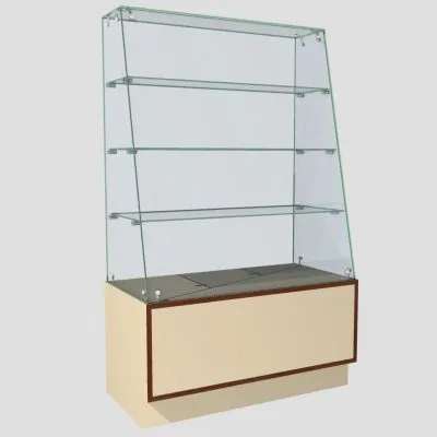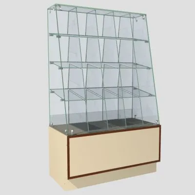 Две стеклянные полки лесенкой, накопитель с полкойВитрина-прилавок СП-09