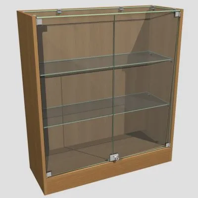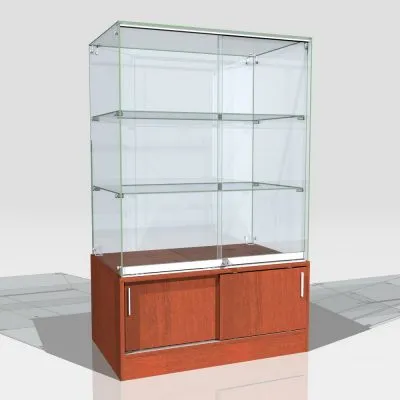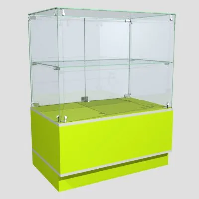 Низкая витрина, дверцы и полки стеклянные, топ стеклоВитрина напольная стеклянная ПМ-36