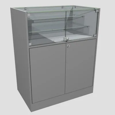 Стеклянные и ДСП (в накопителе) распашные дверцыСтеклянный торговый прилавок СП-06