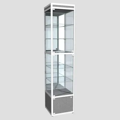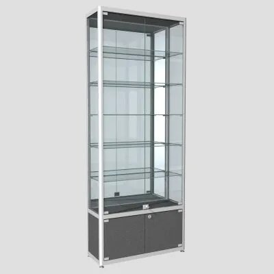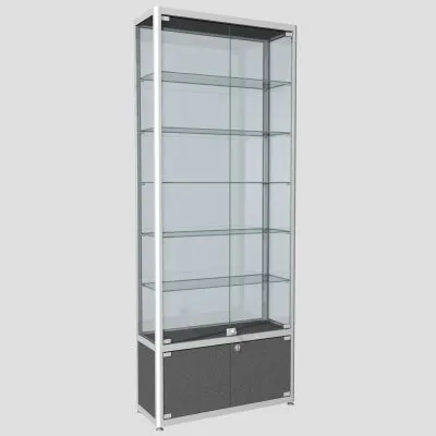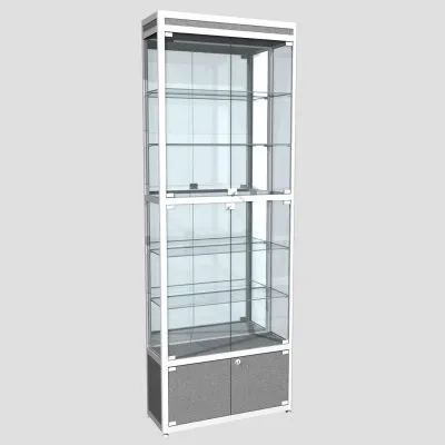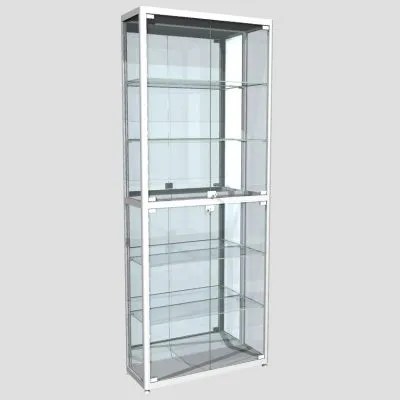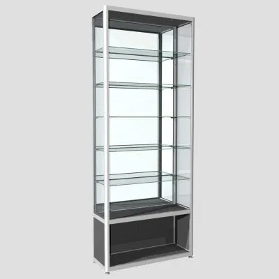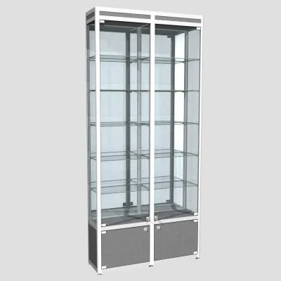 Двухсекционная, все стенки стекло, дверцы распашные, топ и низ – ЛДСПВитрина из профиля угловая ПР-20