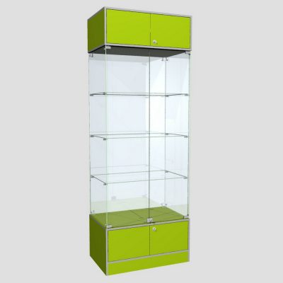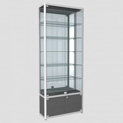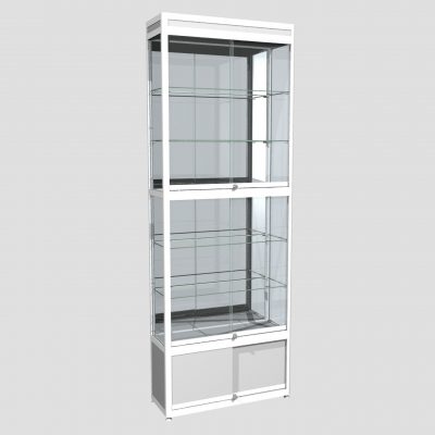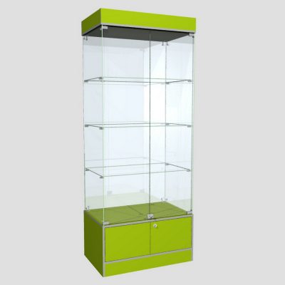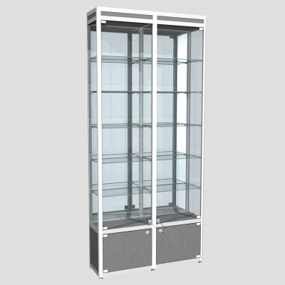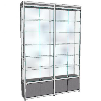 Двухсекционная, все стенки стекло, дверцы распашные, топ и низ – ЛДСПЦена по запросуВитрина из профиля угловая ПР-20