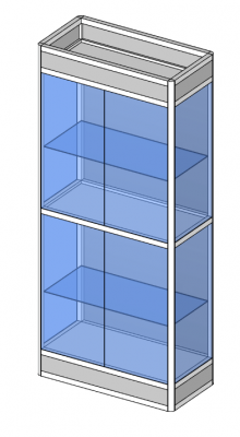 Стенки стекло, фриз и накопитель ЛДСП, доп. обвязка из профиляЦена по запросуВитрина профильная навесная ПР-40