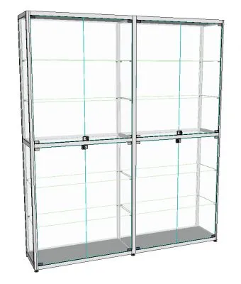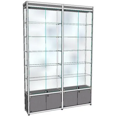 Задняя стенка зеркало, по две стеклянные дверцы в секцииВитрина из профиля двойная ПР-15Б