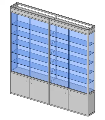 Стенки стекло, фриз и накопитель ЛДСП, доп. обвязка из профиляВитрина профильная навесная ПР-40