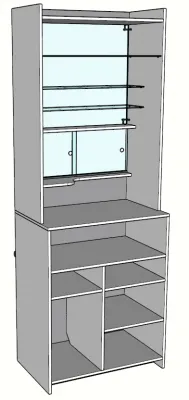 Две секции, сзади оргалит, дверцы стекло распашныеВитрина-стеллаж СТ-29