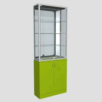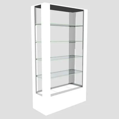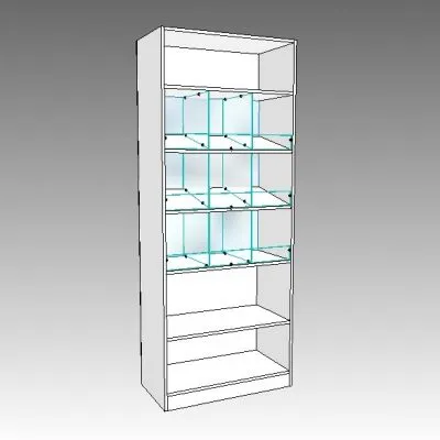 Перфорированные стойки Basis 40×40 мм, полки стекло 150 мм, верхняя полка ЛДСП 300 ммТорговый стеллаж-витрина СВ-01