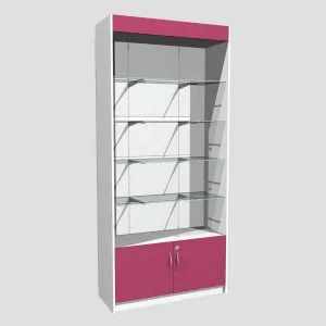 Две секции, дверцы и полки стеклянныеСтеллаж для колготок СТ-40