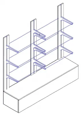 Стойки Basis BS, полки стеклянные регулируемые по высоте, полкодержатели с ограничителямиСтеллаж на стойках Basis с накопителем СБ-05