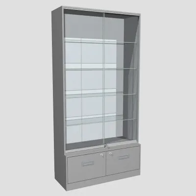 Раздвижные стеклянные дверцы, полки стекло, накопительСтеллаж-витрина ювелирный СПЮ-04