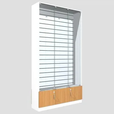 Накопитель, витрина стеклянная с дверцами, экономпанель открытаяВитрина из профиля с экономпанелью ПР-14