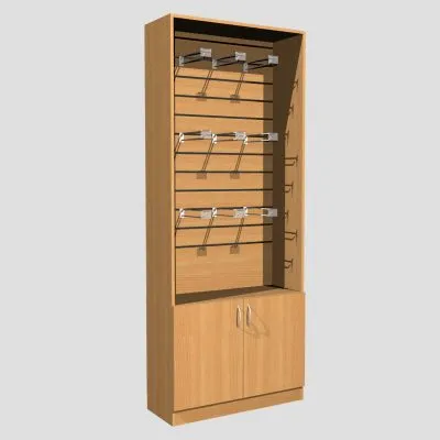 Задняя стенка экономпанель, дверцы стеклянные распашныеВитрина-стеллаж с экономпанелью и полками СТ-25