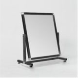 В каталоге представлены напольные зеркала на колёсах для торговых залов и шоу-румов, а также компактные зеркала для обуви. Конструкции изготавливаются на каркасе из стальных труб и оснащаются устойчивым основанием с поворотными роликами.В качестве отделки доступны различные цвета металла — от хрома и «чёрного муара» до золотого анодирования. Любое зеркало можно адаптировать под ваш проект: изменить габариты, добавить полочку или брендирование.