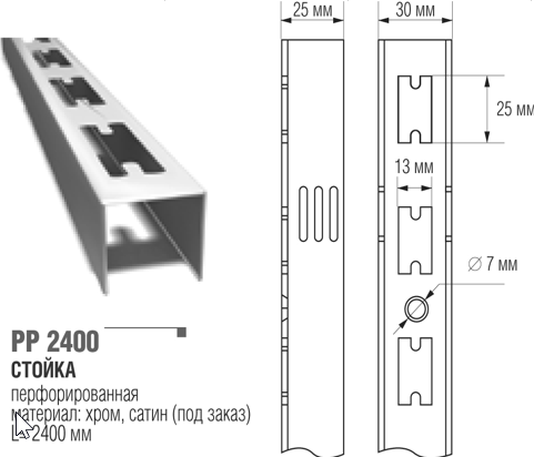 Basis. Размер сечения: 40х40 мм. Цвет: хром1 499 ₽Стойка перфорированная L=1500 мм