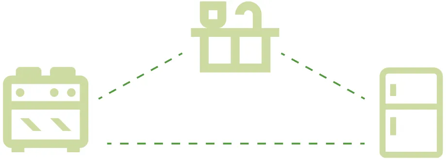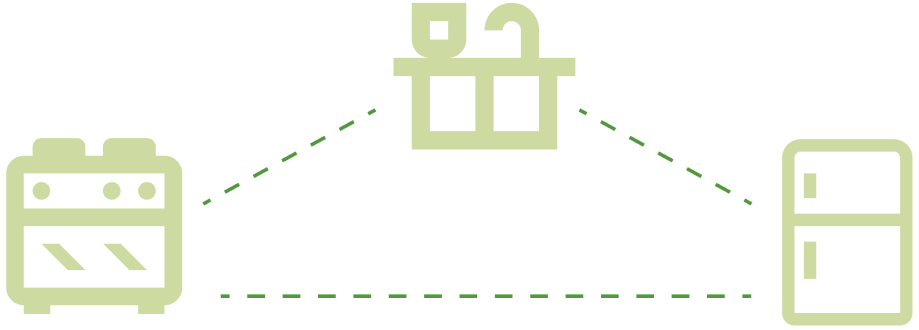 Рабочий треугольник: плита — мойка — холодильник должны располагаться на удобном расстоянии.