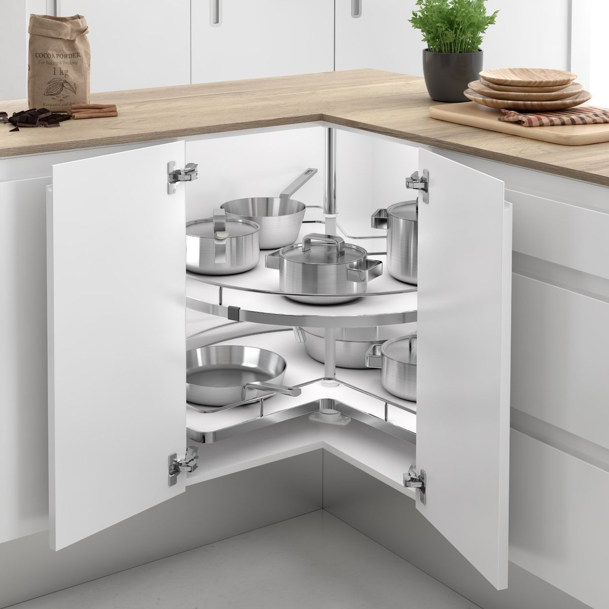 Используйте нестандартные решения Бутылочницы, карусели, модули под потолок — всё это повышает удобство кухни.